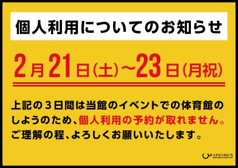 体育館個人利用カレンダー更新しました(2026.2月〜2026.3月分) |